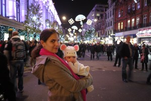 This week, Vera and I came back from a few days in London to see friends and get a little dose of Christmas (it turns out, 3 days of pre-holiday shoppers and relentless Christmas music is plenty). The UK is country #6 for my baby who is not yet five months of age, and I’m already itching to plan another trip. On each flight, a fellow passenger or flight attendant will ask, “Is this her first flight?” and I respond proudly that it’s her 12th and counting. When I talk to people about traveling with the baby, I’m often met with reactions that indicate I must be insane, reckless, or just selfish. These are all valid points, but so far Vera is a very healthy and happy baby, and I hope to keep traveling as long as she remains so. I’m paranoid about ever being the mother-with-the-crying-baby on a plane so I watch her like a hawk for signs of distress and I’ve been lucky so far to have a nearly perfectly-behaved baby (it helps that all I can really do with her is feed and hold her, which are her favorite activities) on each flight. Occasionally, I doubt my own sanity and decision-making when I’m walking around a foreign city late at night with a crying baby, taking a cross-border bus with no adult help, or trying to  juggle a stroller and a suitcase while nursing and walking, but I have no real regrets.