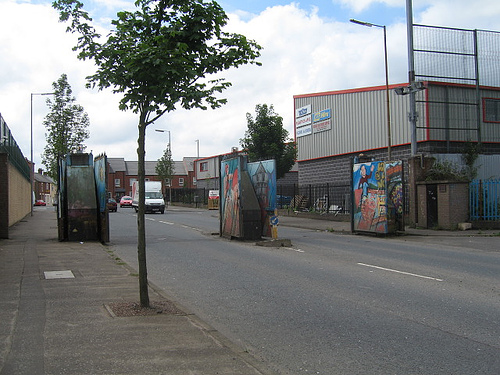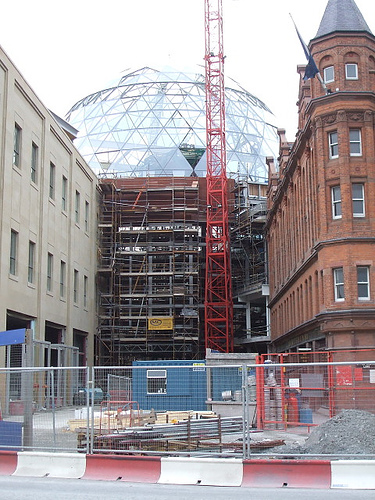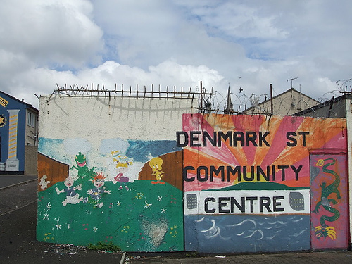 Got to Belfast after a few hours, but realized I had no idea where our hotel (The Merchant Hotel) was, though I had printed out the confirmation and even brought them their Hot List certificate, nothing had the address. So after a long time of driving around lost, we found the tourist office where I loaded up on maps and even a fancy brochure on the hotel. The Merchant is very central, in the Cathedral District, which is vaguely like Soho, if you squint. It's a few blocks of cobblestoned streets and, of course, cathedrals, with a smattering of restaurants and bars. We checked into the hotel, which is very homey and welcoming, and I asked about Black Taxi tours, as there seem to be a million to choose from. The receptionist suggested, *without irony*, that we take the Bentley. H and I found it hysterical for days the idea of touring the previously troubled areas of West Belfast in a fucking Bentley. Our room was lovely, a Loft Suite with an awesome bathroom and nice sitting room: